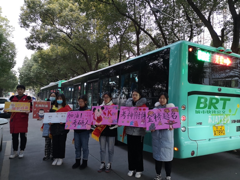 坐标网讯 12月26日,是2021年全国硕士研究生统一考试首日。今年我校共有1984人参加全国研究生入学考试,为解决学生参加考试的交通问题,学生处根据学生的实际需求,组织了12辆公交车负责将学生集中送到考点。12月26日上午,各二级学院组织师生温情送考,为即将走上考场的考研一族加油鼓劲。