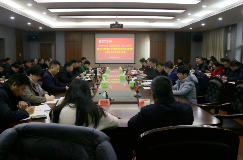 坐标网讯 12月29日上午,我校党委理论学习中心组(扩大)举行第十二次学习会,专题学习习近平法治思想和中央全面依法治国工作会议精神, 并开展“对标对表新思想,开拓‘强富美高’新江苏实践新境界”专题读书调研成果分享和二级党组织中心组学习经验交流。校党委书记戴斌荣,党委副书记、纪委书记刘必清,党委副书记于建江,党委常委、副校长庞波,党委常委、副校长汤克明,党委常委、副校长毕凤珊以及各二级学院、部门党政主要负责人参加会议。会议由戴斌荣主持。