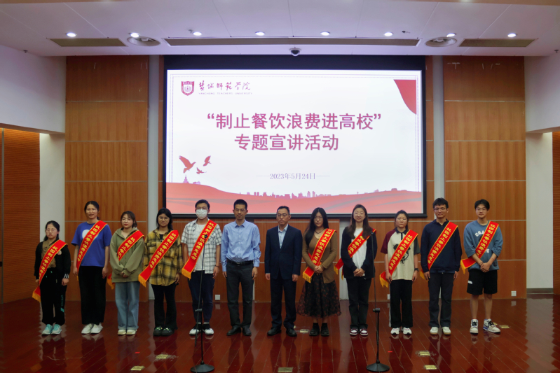 为贯彻落实习近平总书记关于制止餐饮浪费一系列重要指示批示精神,引导广大师生积极弘扬勤俭节约的中华民族传统美德,5月24日下午,我校联合盐城市市场监督管理局组织开展“制止餐饮浪费进高校”专题宣传活动。副校长徐华,盐城市市场监督管理局党组成员、总工程师侍学兵出席活动。活动由后勤基建处处长、后勤保障集团总经理蔡志宏主持。