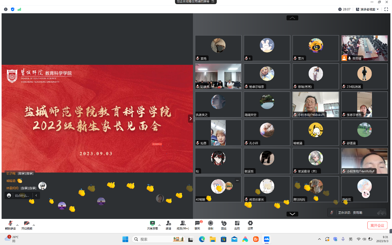 为切实构建家校共育协同载体,提升育人实效,进一步强化家校沟通,学院立足学院实际情况,发挥“互联网+”优势,搭建“云上”家校育人平台。9月3日上午学院成功举办线上2023级新生家长见面会。会上,学院党委书记杨日晨对思政育人体系、学生管理模式、心理健康、职业生涯等方面进行了详细介绍,强调家校共育、协同发力的重要性。学院院长柴江从学院专业建设、办学条件及培养质量等三个方面向家长们做了详细介绍。会后,各班辅导员以班级为单位召开家长会,对家长关心的系列问题进行答疑解惑。此次“云上”新生家长会,进一步增强了家校共育机制,为2023级新生向大学生活迈出第一步打下坚实基础。