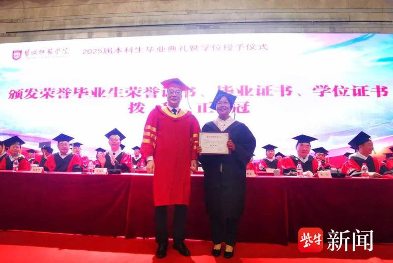 6月16日,在盐城师范学院2025届本科生毕业典礼上,60岁的朝鲜语专业毕业生陈立敏成为全场焦点。作为本届唯一“荣誉毕业生”,她庄重地从校领导手中接过证书。花白鬓角与青春场景形成独特映照,无声诉说着这位本届最年长本科生跨越年龄的求学路。荣誉背后,是她凭借韩国语能力考试(TOPIK)中级证书、韩国清州大学“优等生一等奖”等优异成绩,为四年本科生涯画上的圆满句号,也成为毕业典礼最动人的励志注脚。