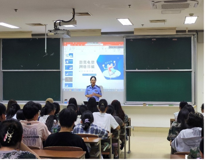 9月18日,学院与共青团亭湖区委共同邀请亭湖区公安局侦查中心李警官,为学院新生讲授反诈“公开课”。她从学生受诈骗的真实案例和数据切入,通过探讨受害人认知和心理特点、电诈背后灰黑产结构等核心因素,剖析诈骗与受骗行为的本质,进一步加强新生对电信网络诈骗套路的认识。