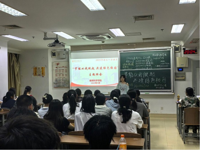 近日,教育科学学院面向全体2025级新生开展“节能从我做起 共建绿色校园”主题班会活动。