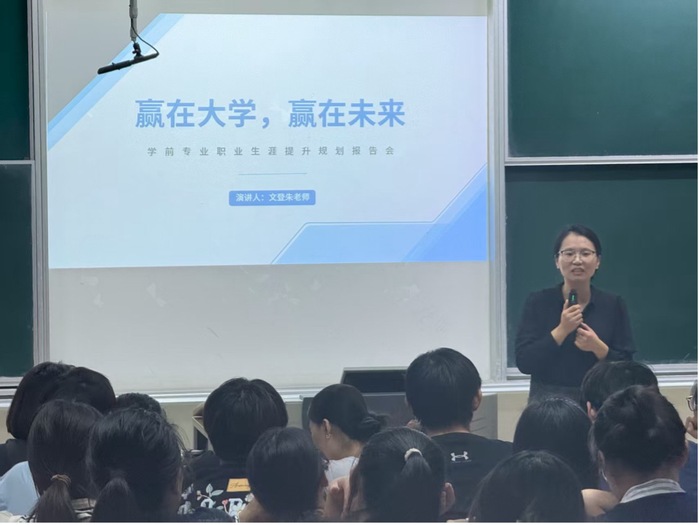 9月22日晚,教育科学学院在主楼B309教室举办职业规划与考研指导专题讲座。考研名师朱老师应邀主讲,2025级学前转本新生参加活动。