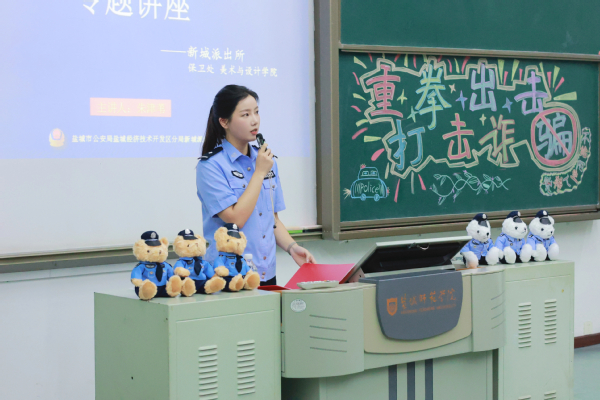9月22日晚,学校保卫处、美术与设计学院联合盐城经济技术开发区新城派出所举办反诈宣传专题讲座。