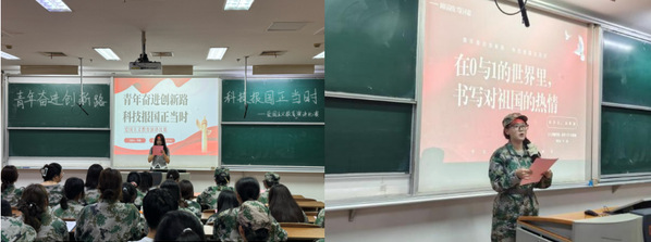 9月18日,大国担当主题思政课率先开讲。课程通过丰富的历史资料和珍贵的影像,结合专家的深入讲解,回顾中国人民为世界反法西斯战争胜利作出的巨大贡献与牺牲。课后,全体新生齐唱《歌唱祖国》,在激昂的旋律中深化对祖国的情感认同。学院同步开展青春告白祖国观后感征文活动,收到优质稿件300篇。