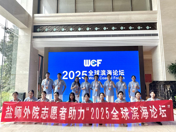 9月24日-25日,由江苏省人民政府、自然资源部、国家林业和草原局共同主办,主题为“美丽滨海:生态优先 绿色发展”的2025全球滨海论坛在盐城市举办。外国语学院紧密配合共青团盐城市委、论坛执行组,严格完成志愿者招募与选拔,并围绕论坛主题、服务礼仪、外语沟通技巧等开展专项培训,共选拔出五十名青年志愿者助力2025全球滨海论坛成功举办。