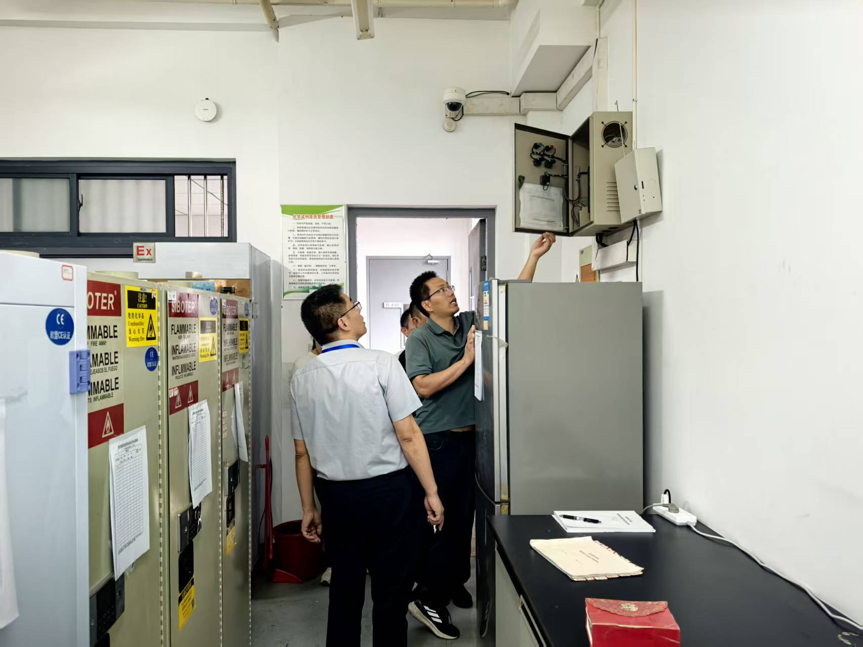 为深入贯彻落实省教育厅关于国庆期间学校安全工作的指示精神,全面排查安全隐患,9月28日下午,由国有资产与实验室管理处牵头,联合教务处、科学技术处、保卫处、后勤保障集团组成的专项检查小组,对全校涉危实验室开展深入、细致的节前安全大检查,以实际行动践行“早发现、早整改、早防范”的原则,为假期校园安全稳定保驾护航。