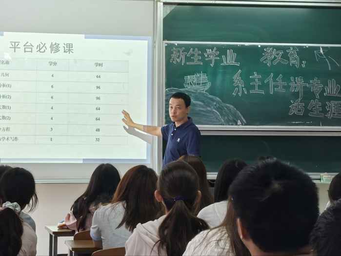 9月30日上午,数学与统计学院在通榆校区主楼国际会议中心和教室,分专业开展新生学业领航教育。数学系、信息与计算科学系和统计系主任面向新生开展专业介绍,2025级全体新生参加活动。