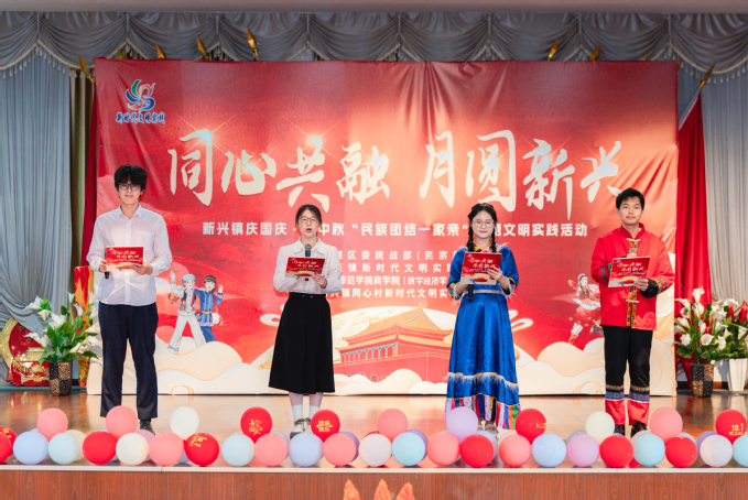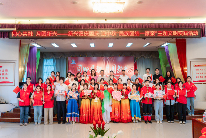 9月28日下午,商学院(数字经济学院)联合亭湖区委统战部(民宗局)、新兴镇在同心村新时代文明实践站举办“庆国庆·迎中秋——民族团结一家亲”主题文明实践活动。来自回族、维吾尔族、柯尔克孜族、苗族、哈尼族等民族的同学与师生代表60余人欢聚一堂,共叙深厚情谊,共绘民族团结美好画卷。