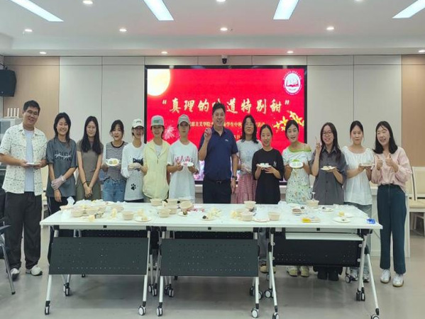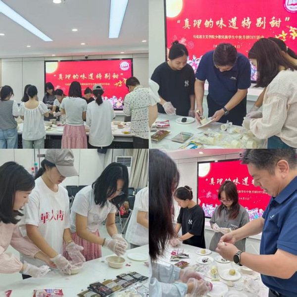 10月5日下午,马克思主义学院在博学楼A208开展“真理的味道特别甜”民族学生中秋月饼DIY活动。在月饼制作环节,同学们在老师的示范下认真学习揉制饼皮、包裹馅料、压膜成型等步骤。不一会儿,空气中便弥漫起月饼的香甜气息。在猜灯谜互动环节,同学们或凝神思考,或低声交流,不时为猜中谜底而欢呼雀跃,进一步增添了节日的喜庆氛围。在套圈游戏环节,同学们依次在指定线外投掷套圈,现场欢呼声、喝彩声此起彼伏。在中秋灯笼制作环节,同学们发挥创意,将多彩的民族文化与中秋佳节相融合,制作出一盏盏独具特色的灯笼,并写下“岁岁年年,花好月圆”的美好祝愿。马克思主义学院党总支书记李荣庆寄语广大同学在盐师不仅能学到知识,更能感受到家的温暖,希望大家像石榴籽一样紧紧拥抱在一起,共同进步、共创未来。