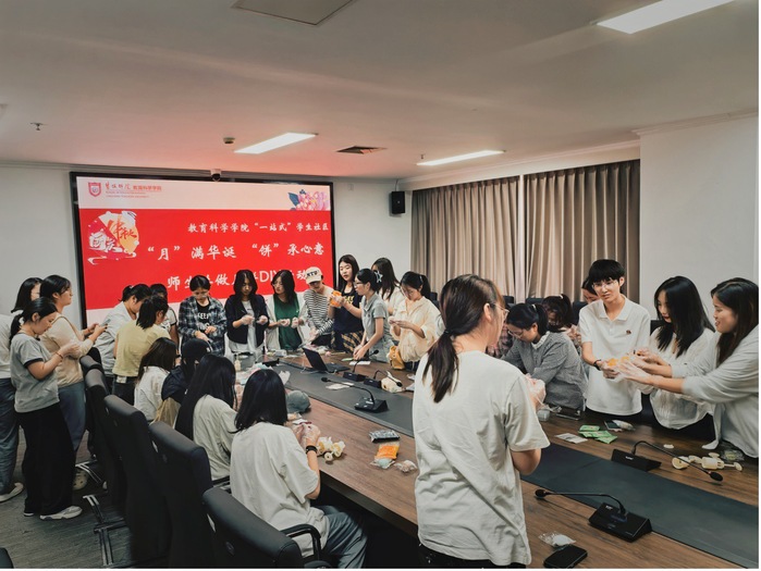 随后,学院领导与新生共同制作中秋月饼。大家一同揉面团、包馅料、压模具,在动手实践中感受传统节日的文化魅力。制作过程中,师生之间亲切唠家常,详细询问假期出行与生活安排,对准备留校过节的学生表达暖心关怀,让远离家乡的新生切实感受到学院的温暖。