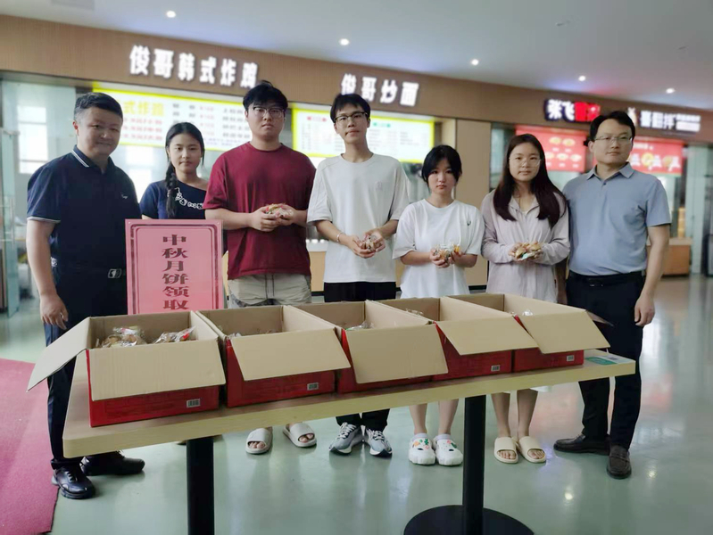 此外,10月6日,我校后勤部门在所有开放食堂同步开展“中秋免费送月饼”活动。中秋节当天,两个校区食堂里洋溢着节日的喜庆气氛,食堂入口处,各种口味的独立包装月饼整齐摆放,前来就餐的同学都会收到一份月饼,表达学校对假期留校学子的美好祝福。