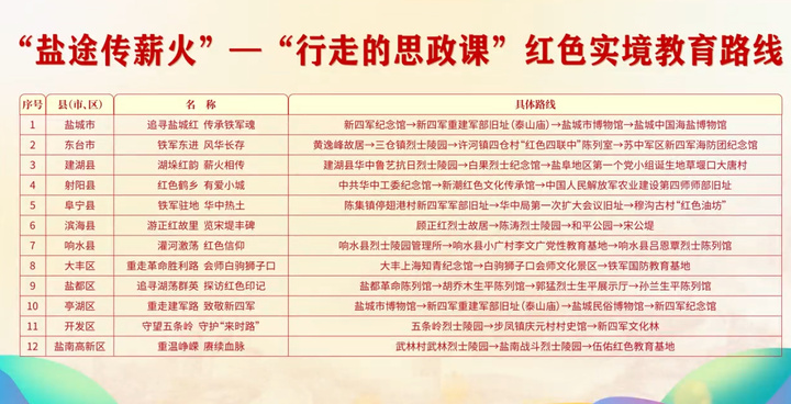 紧接着,“盐途传薪火”——“行走的思政课”红色实境教育路线正式发布。12条路线串联起新四军纪念馆、五条岭烈士陵园等红色场馆与以烈士命名的镇村,每一条都藏着盐阜大地的红色记忆。随后,盐城师范学院思政教师讲述王强老师用生命坚守马克思主义阵地的故事,《薪火相传承信仰之光,躬身笃行担青年使命》的微课,让“担当”二字愈发清晰。