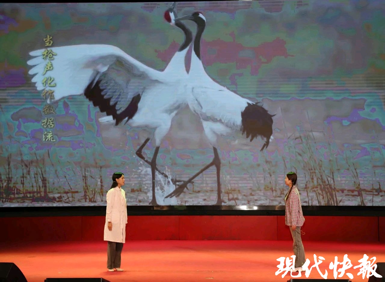 活动伊始,盐城师范学院学生带来情景朗诵《牧鹤女孩,绿之守护》。两代“守绿人”跨越时空对话,将徐秀娟用生命守护丹顶鹤的故事与当下黄海湿地保护实践相融,6分钟的表演,让“绿色坚守”的信念悄然浸润人心。随后,盐城工学院思政教师以《0.01毫米的青春刻度》开讲,从抗战时期吴运铎用血肉打磨武器精度,到如今师生深耕智能分拣机器人、新能源电池优化,微小零件里的“匠心”,成了科技报国的生动注脚。