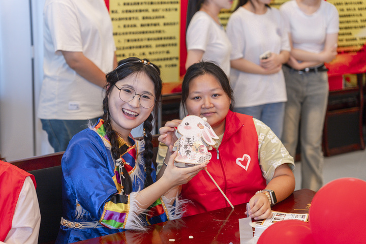 “一盏明灯照暗夜,万家灯火共团圆。”活动现场特别设置了中秋灯笼手作区、民俗趣味挑战区与传统投壶体验区,参与者可自由选择、沉浸体验。大家亲手制作的一盏盏兔子花灯,既点亮了中秋佳节的温馨祝福,也映照出“民族团结一家亲”的温暖内涵。投壶竞技与民俗游戏中,各族同胞并肩协作、笑语不断,在互动中深化了情感,凝聚了共识,共同绘就了一幅和睦共融的生动画面。