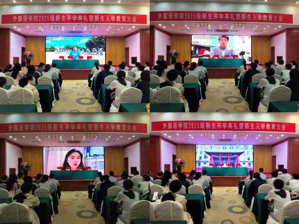 典礼在优秀毕业生代表录制的“学长学姐有话说”寄语视频中拉开帷幕。学院党委副书记、院长周海明代表学院向全体新生表示热烈欢迎。他以“选择即意义”为切入点,阐释拥抱选择与开拓人生可能性之间的内在联系,系统介绍外国语学院作为高层次人才培养平台的师资力量与专业优势,并从“以深度学习定义大学”“以主动创造淬炼能力”“以跨文化沟通成就格局”等三个方面,对新生提出殷切期望与方向指引,激励广大新生以卓越追求和时代担当实现自我价值。