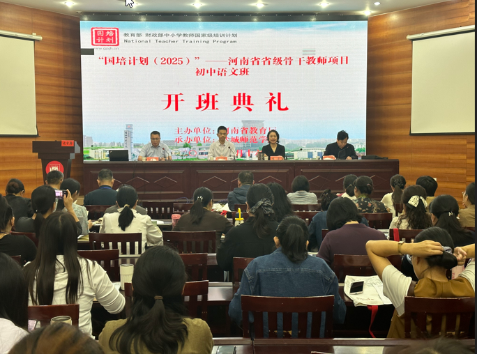 10月16日,由我校文学院承办的“国培计划2025”河南省省级农村骨干教师能力提升项目(初中语文)开班仪式在通榆校区国培报告厅举行。副校长徐华出席开班仪式并讲话,成教处党总支书记刘井飞主持开班仪式。50位来自河南各地的培训学员参加开班仪式。