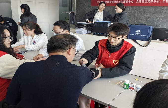 10月29日,商学院心火青年志愿者协会联合盐城市第二人民医院、文峰街道社区卫生服务中心、众想社区在仁恒·滨河世纪小区迎宾楼联合举办重阳节义诊志愿活动。
