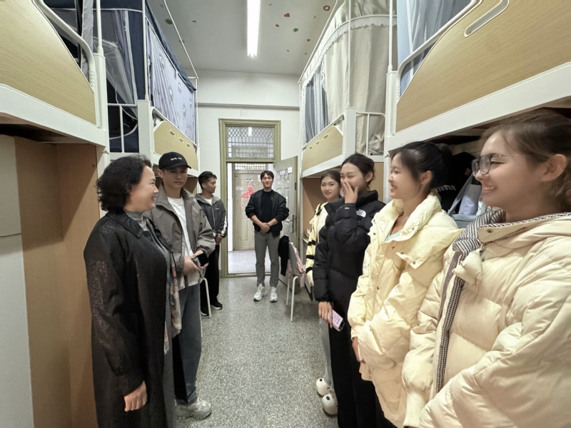 10月28日,音乐学院党总支书记张铁虎,党总支副书记、院长孙连君带队深入学生宿舍,与2025级新同学亲切交流。