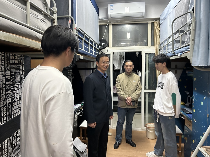 “课程的设置,你们觉得学习有收获吗?”“学习过程中有什么困难吗?”“对教师讲课满意么?”每走进一间宿舍,张铁虎都细致了解同学们入学后的生活适应情况、课程学习感受以及生活学业上面临的难题。同时,结合近期校园安全案例,叮嘱新生要规范用电、杜绝违规电器,提高反诈骗意识,引导同学们共同维护安全、有序、整洁的住宿环境,并鼓励新生尽快调整状态,明确学业目标,合理规划大学时光,积极参与专业实践和校园活动,在探索中提升综合能力,度过充实有意义的大学四年。