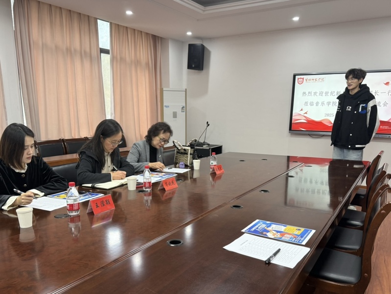 茅晓花介绍了集团发展概况及人才需求。她指出,世纪新城集团作为地方重要文化企业,高度重视青年人才的引进与培养,期待通过与音乐学院的合作,共同搭建学生实习实训平台,推动文化艺术人才实践能力的提升。张杰兰结合集团演艺项目特点,对学生专业能力提出具体期望,并表达深入合作意向。王滢颖详细说明实习岗位设置、招聘流程及人才发展通道等情况。