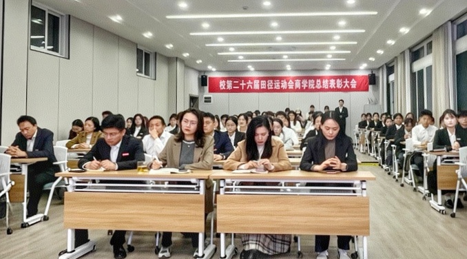 11月5日下午,学校第二十六届田径运动会商学院总结表彰大会在新长校区逸夫楼二楼李想数字报告厅召开。学院党委书记韩诚,党委副书记、院长殷凤春,副院长钱英、王力出席活动。党委副书记秦圣阳主持表彰大会。