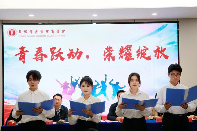 会上,与会人员共同观看运动会精彩视频,重温赛场上商学院健儿的拼搏风采。诗歌朗诵《青春跃动,荣耀绽放》展现出商院健儿在操场上奋力拼搏、昂扬向上的精神风貌。