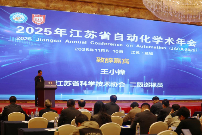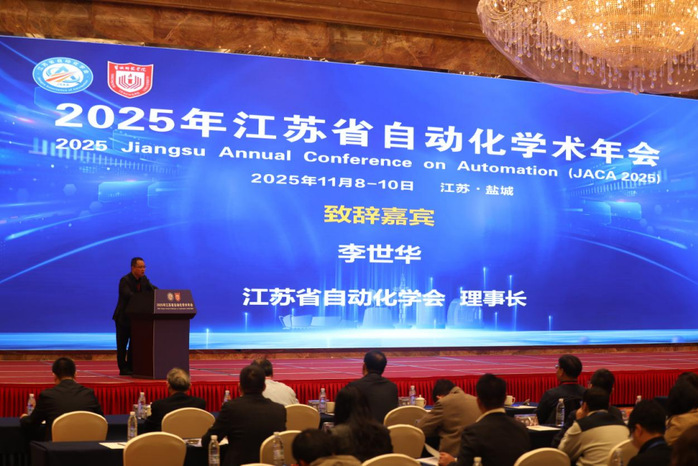 11月8日—9日,2025年江苏省自动化学术年会在盐城召开。江苏省自动化学会理事长李世华,省科协二级巡视员王小锋,学校党委书记张玉勤出席开幕式。党委副书记于建江主持开幕式。