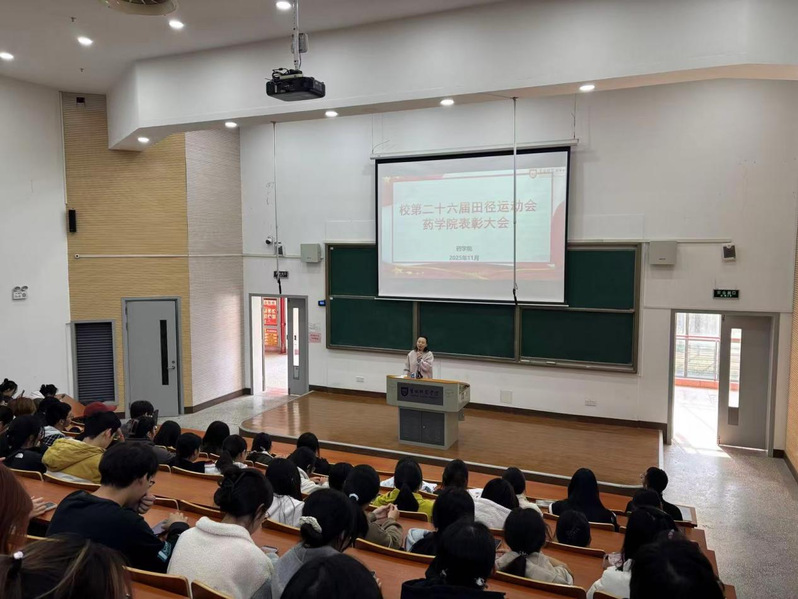 11月12日药学院召开2025年校第二十六届田径运动会表彰大会。学院党总支副书记陈倩倩出席大会,全体师生运动员、学生干部代表共同参会。