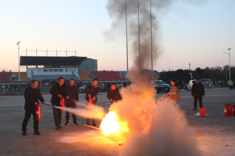 在消防技能实操培训环节中,保卫处相关同志详细讲解了干粉灭火器、消火栓等常见消防设施的类型、适用场景及规范操作步骤。在实战灭火练习中,参训人员亲身体验使用干粉灭火器扑灭初起火源的全过程。