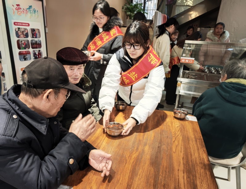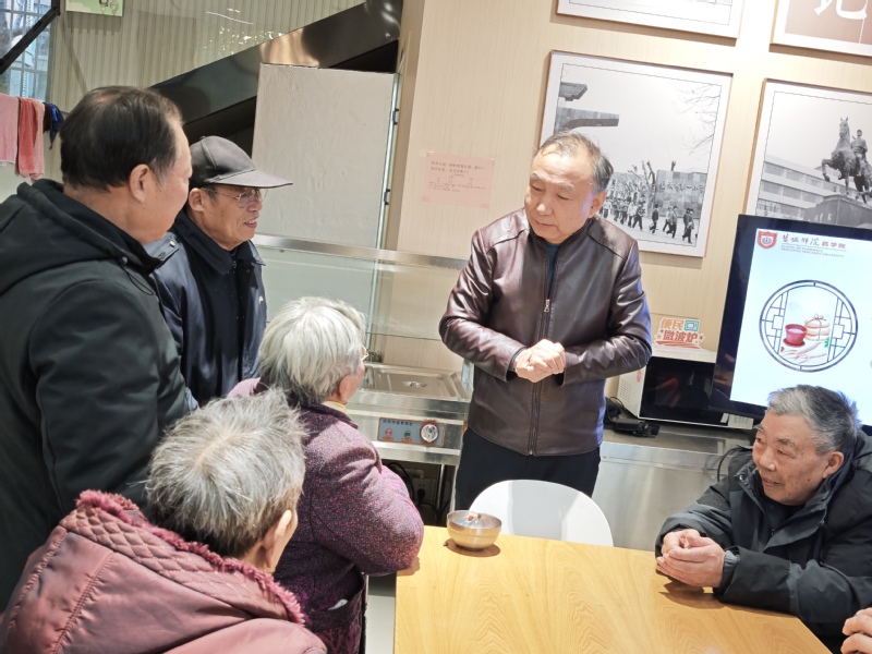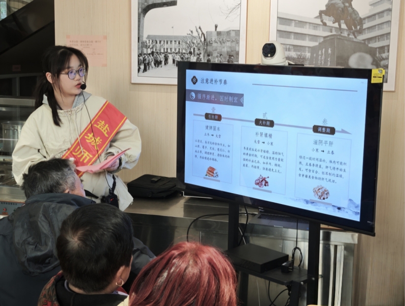 盐城市中医院康复科主任中医师刘龙彪应邀与前来参加活动的居民亲切交流,深入浅出地讲解中医养生知识,并特别提醒“养生需因人而异”,要结合自身体质科学进补。在长者食堂,学生志愿者为现场居民送上热气腾腾的五红汤。学院“本草润城,盐药新声”理论宣讲团成员万羽萱为社区居民带来实用的冬季养生知识分享。她详细介绍了冬季进补的注意事项,并推荐了多款适宜冬季食用的家常药膳,帮助居民在饮食中融入养生智慧。