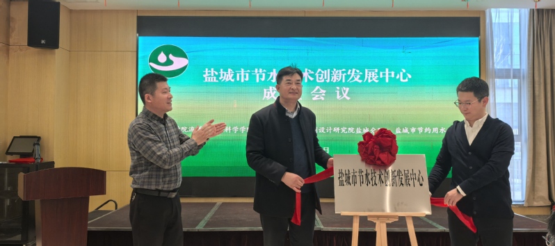 仪式现场,李传武、刘恒、陆翔代表三方签署《共建盐城市节水技术创新发展中心合作协议》,明确了中心建设目标、合作内容与运行机制。随后,三方共同为“盐城市节水技术创新发展中心” 揭牌,标志着这一校地协同创新平台正式启动。