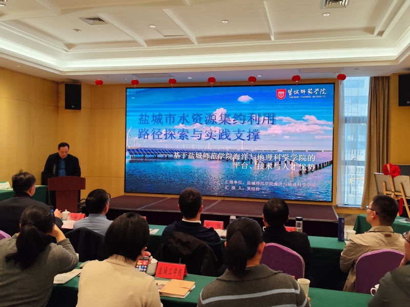 在致辞环节,李传武介绍了我校及海洋与地理科学学院的发展概况。他强调,学院始终立足盐城沿海区位优势,聚焦智慧海洋、生态保护等重点领域,积极服务“数智海岸”“蓝碳经济”及低空经济发展等地方重大需求。作为创新中心的技术主办单位,学院将紧扣盐城市水资源管理实际需求,牵头搭建盐城市节水数据平台,实现用水异常实时预警、节水潜力精准测算,为地方节水工作提供科学决策支撑。学院将充分发挥学科、科研、人才三位一体优势,持续强化科技创新能力、完善平台服务功能、深化社会服务效能,为盐城市节水事业发展注入智慧与力量。近年来,学院党委副书记吴恒仲介绍了学院在水资源集约利用、技术研发、水生态保护、节水宣传等领域的探索实践。