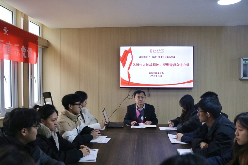 122日,音乐学院在一站式学生社区举办纪念抗战胜利主题音乐党课。学院党总支副书记韩伟与学生党员、发展对象一起在红色旋律与历史叙事中重温抗战岁月、汲取奋进力量。