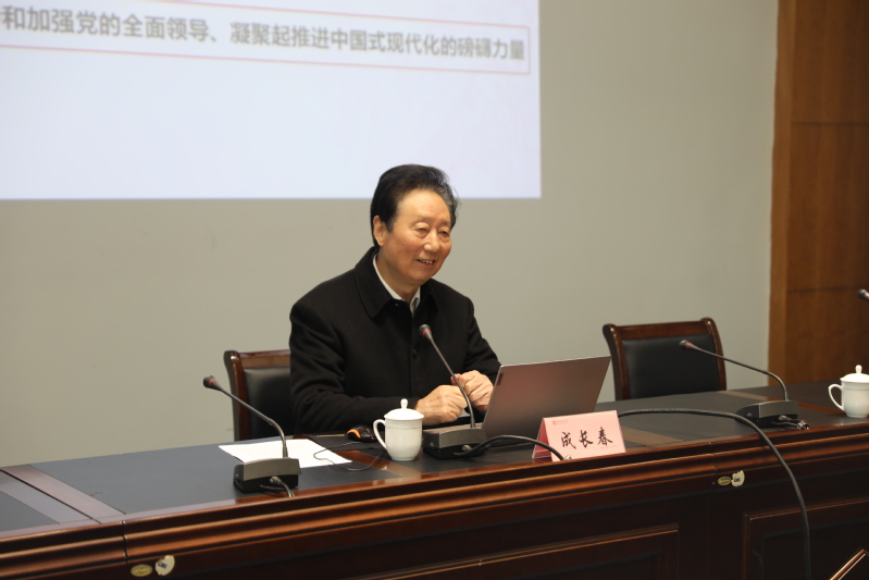 12月8日下午,我校举办学习贯彻党的二十届四中全会精神宣讲暨校党委理论学习中心组学习报告会,省委宣讲团成员、南通大学原党委书记、江苏长江经济带研究院院长、江苏省习近平新时代中国特色社会主义思想研究中心特约研究员成长春教授作题为《奋力开创中国式现代化新局面》的专题报告。学校党委书记张玉勤主持会议并作总结讲话。