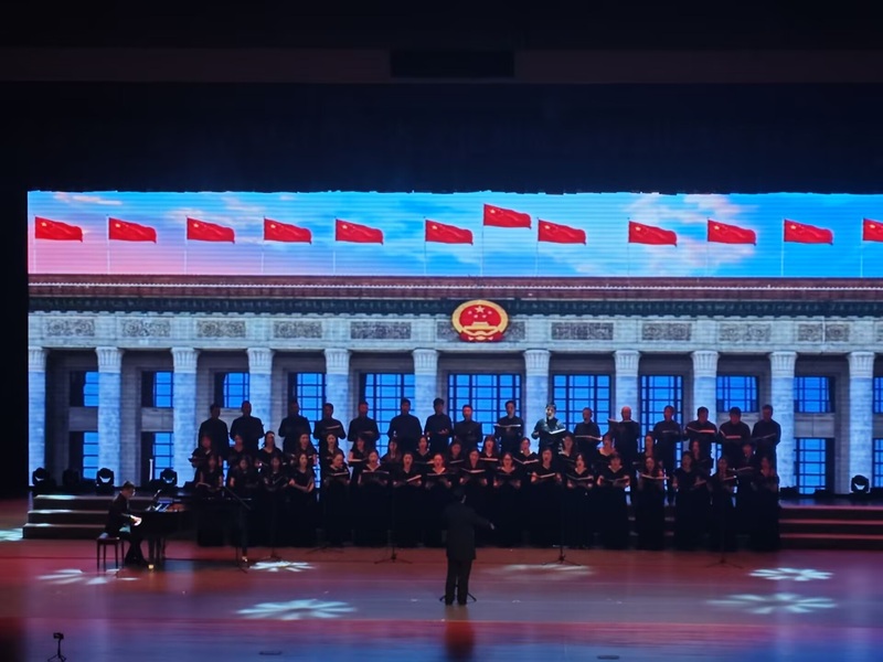音乐会现场氛围热烈,经典旋律与时代乐章交织。音乐会上半场以经典史诗《黄河大合唱》为核心,八个乐章的经典旋律热情歌颂了中华民族源远流长的光荣历史和中国人民坚强不屈的斗争精神。大合唱《怒吼吧!黄河》将氛围推向高潮,唤醒了每一位听众的民族觉醒意识。下半场的《奋进新时代》合唱组歌以“新时代成就与精神”为核心,通过六个节目串联起国家发展、人民向往与民族奋进的主题,风格多元且情感饱满。全场大合唱以《新时代的光芒》压轴,以磅礴气势讴歌新时代成就,凝聚民族复兴的奋进力量。