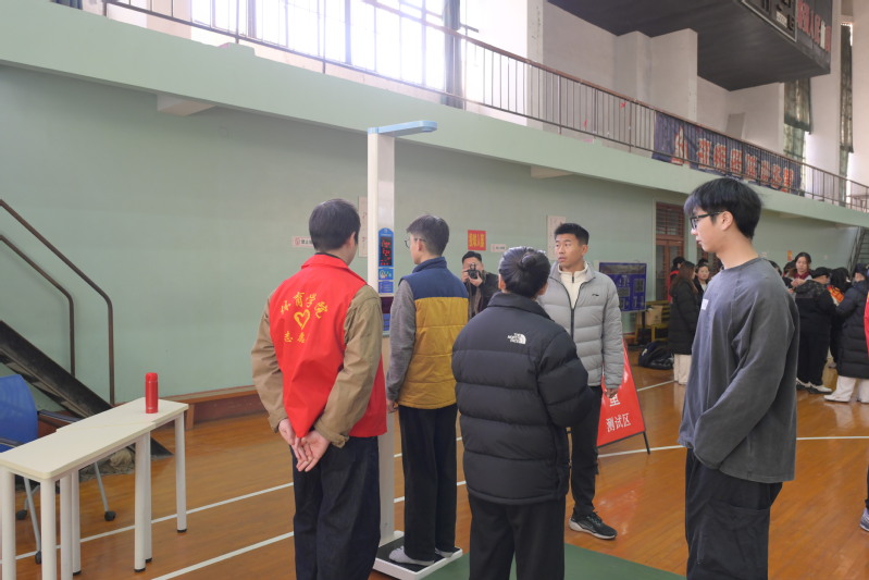 参加抽测的400余名学生按性别科学划分为16组,每组20—30人,实行“专人带队、分时段错峰”测试模式。南通大学监测团队负责成绩实时录入与数据校验,我校体育教师与学生志愿者组成引导专班,全程提供流程指引与技术协助;从学生集合整队、项目衔接过渡到数据核对确认,各环节无缝衔接、规范有序。
