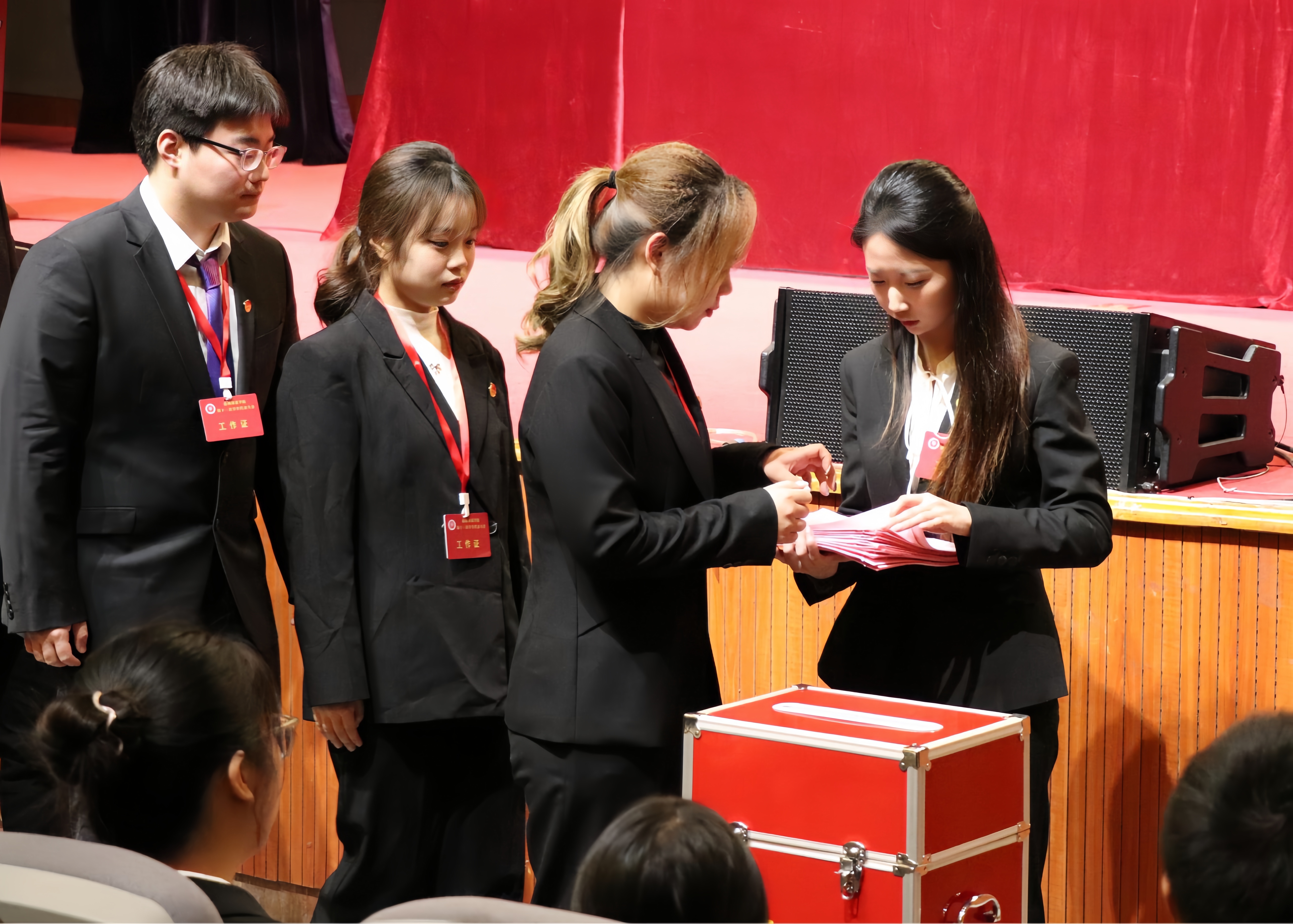 会议经不记名公开投票,选举产生33名第十一次学生代表大会常任代表。在第十一次学生代表大会常任代表第一次全体会议上,选举商学院、数字经济学院曹恒孜,马克思主义学院史伟苏,人工智能学院金友柯,物理与电子工程学院岳墨涵,体育与健康学院徐泓五名同学为第十一届学生会主席团成员。