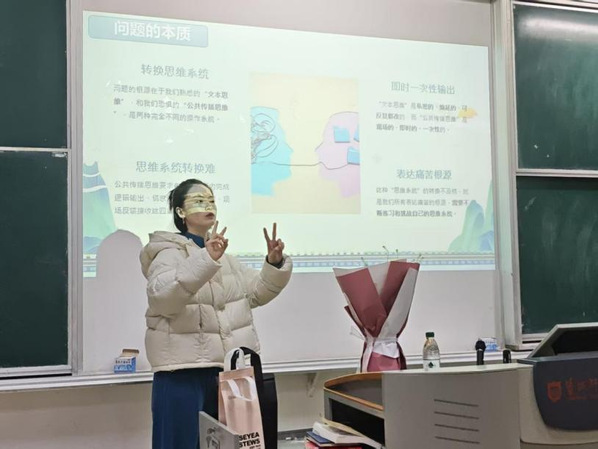 12月11日晚,一场聚焦“专业表达力”的专题讲座在主楼B103教室开讲。文学院张艺婕老师应邀面向创新创业学院、仲弘学院新文科卓越班开讲,帮助他们突破表达瓶颈,提升核心素养。