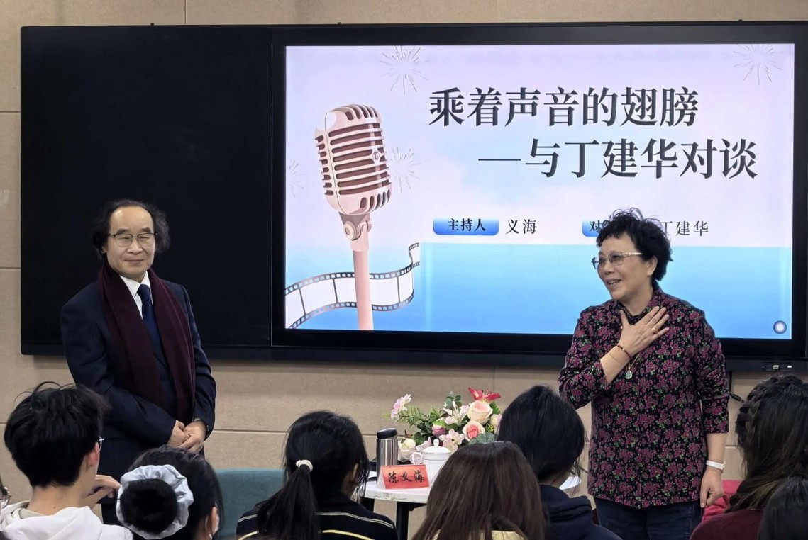 12月13日,文学院特邀上海电影译制厂配音演员、导演,上海电影学院特聘教授丁建华举办“乘着声音的翅膀”主题座谈会。