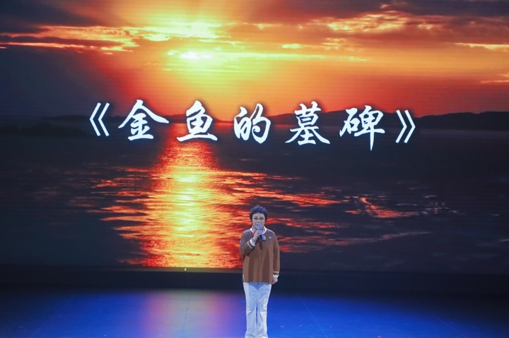 著名表演艺术家丁建华这是第二次参加义海的诗歌朗诵会。2015年她曾参加义海创作三十年诗歌朗诵会。丁建华这次朗诵了义海的作品《金鱼的墓碑》,并与义海合作朗诵了《西茉纳之歌·流浪》。丁建华在朗诵艺术上精益求精的艺术精神,深深感染了在场的每一位听众。朗诵结束后,丁建华说:“朗诵,是让文字获得第二次生命的过程。今天,当我再一次站在盐城的舞台上,用声音走进义海老师的诗歌世界,依然能感受到那份纯粹的艺术震颤。从《西茉纳之歌·流浪》的流动与诗意,到《金色的墓碑》的庄重与深刻,每个字都承载着情感的力度,美学上的纯粹。声音的艺术,是分寸,是理解,更是对创作者最深的致敬。感谢诗歌,感谢这片土地,让我们在同一个时空,共同抵达远方。”