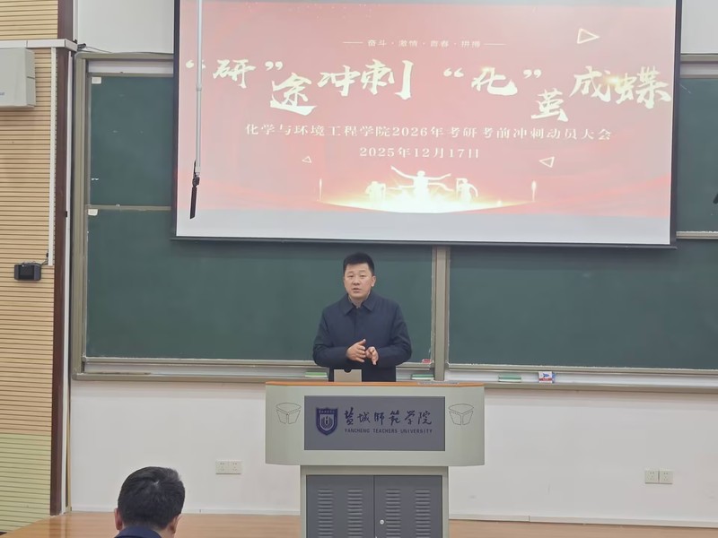 1217日,化学与环境工程学院举办2026年考研考前冲刺动员大会。学院党政携所有毕业班班主任、辅导员老师以及2026147名考研学子参加活动,学院党委副书记谭瑾主持活动。