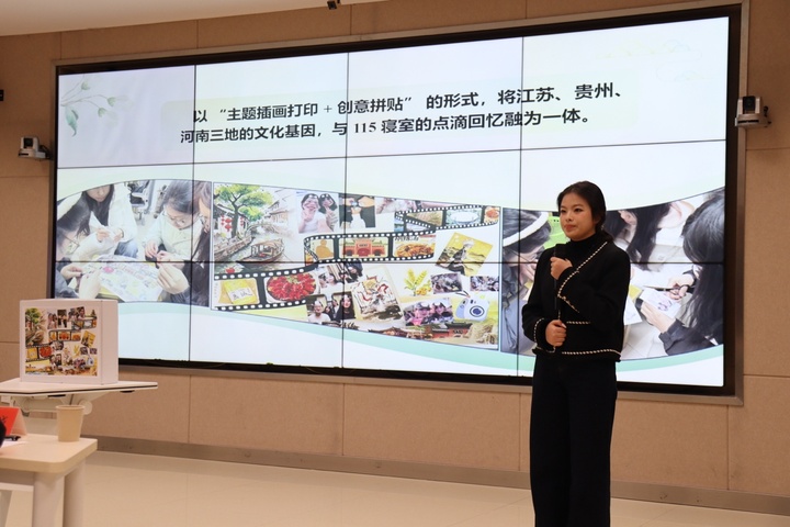 手工赛道以“寝聚地域风,手作忆温情”为主题,鼓励寝室成员协作创作,既彰显家乡文化特色,又融入共同生活记忆。参赛作品形式丰富多样,微缩模型、创意拼贴画等兼具观赏性与故事性。美术与设计学院《袖珍园居》将江南造园艺术浓缩于方寸之间,烟雨诗意跃然眼前;化学与环境工程学院《山河映寝意,烟火聚温情》融合河南古今风华、贵州山水人文、江苏江南烟火三大地域元素,诉说着乡情与友谊;音乐学院《宿舍温情 / 地域文化》让粗犷大气的徐州文化与婉转细腻的盐城文化碰撞交融,诠释了尊重和谐的寝室氛围。凭借在地域文化表达、创意呈现与情感传递上的突出表现,这三件作品脱颖而出,荣获该赛道一等奖。