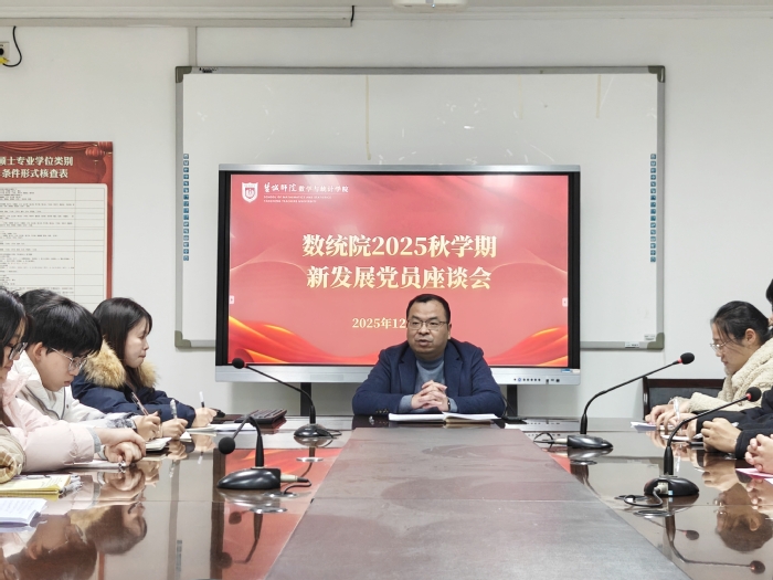12月25日下午,数学与统计学院召开2025年秋学期新发展党员座谈会。学院党委副书记左飞出席会议并讲话。