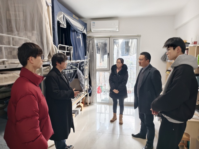 学院领导班子带领辅导员深入学生宿舍开展走访慰问与安全排查工作。学院领导仔细检查了宿舍环境卫生,询问学习生活状况,认真听取同学们对学院工作的意见建议,并着重叮嘱大家严格遵守冬季用电规范。学院领导还现场解答了学生的疑问,勉励同学们珍惜大学时光、科学规划学业发展,积极参与校园实践活动。