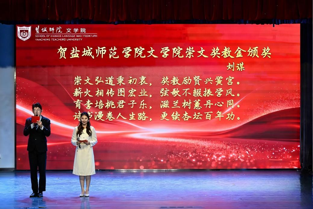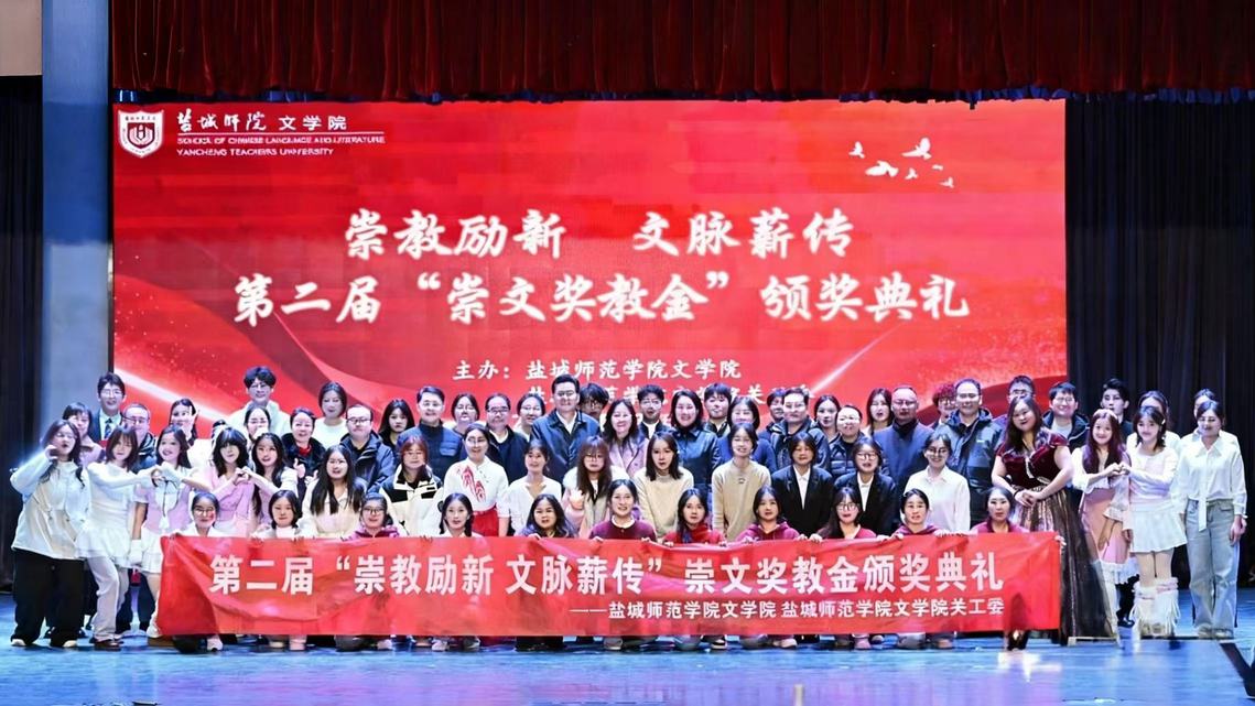 1230日,文学院第二届崇文奖教金颁奖典礼在新长校区音乐厅举行。学校关工委副主任、教育发展基金会副理事长庞波,崇文奖教金捐献者、中文83届校友、盐城师范学院教育发展基金会理事、无锡市蔚联钢铁有限公司总经理严峰夫妇受邀出席。文学院党政领导班子全体成员以及师生代表共计400名师生代表参加典礼。