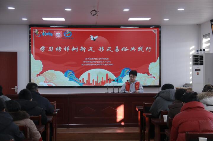 为弘扬榜样精神,助推移风易俗,培育文明新风,12月26日下午,盐城市亭湖区新兴镇新时代文明实践所联合盐城师范学院“青力承光”宣讲团在新南社区开展“学习榜样树新风 移风易俗共践行”主题活动,用榜样故事凝聚奋进力量,以志愿宣讲倡导文明新风,社区居民、党员代表等踊跃参与。