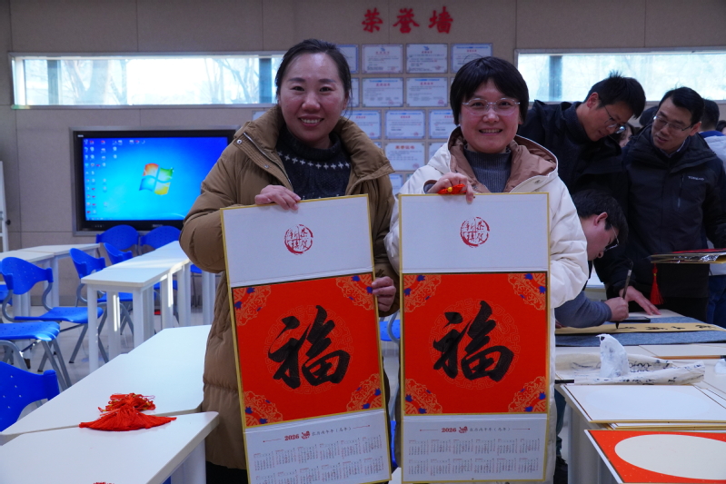 “这样的活动不仅让大家沉浸式感受到了浓浓的年味儿,还领到了现场创作的书画作品,特别有纪念价值。”刚收获字画的王老师难掩喜悦。参与创作的张康老师也表示,能用自身特长为同事们送上新年祝福,成就感满满,让大家深切感受到学校大家庭的温暖。