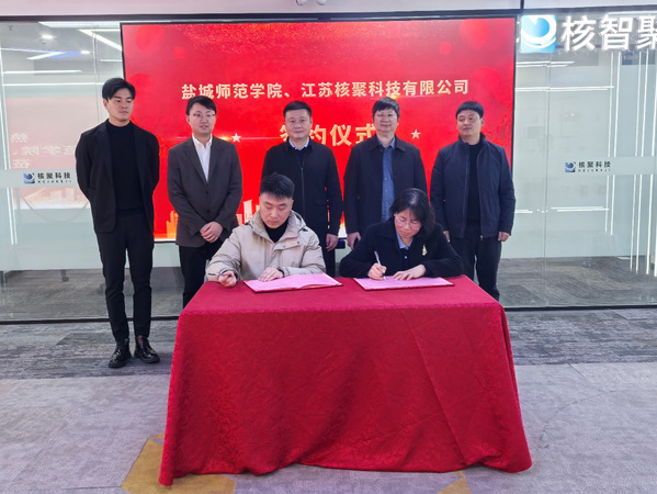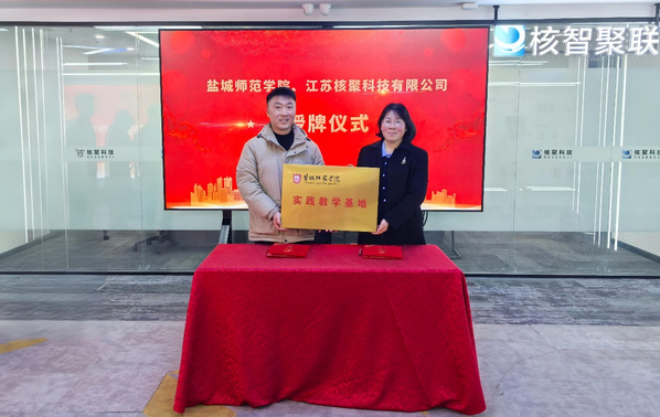 洽谈会上,江苏核聚科技有限公司负责人沈玉龙详细介绍公司业务布局与核心产品。双方共同签署《校企共建实践教学基地协议》并举行授牌仪式,双方将结合自身优势与发展需求,在共建实践教学基地、联合科研攻关、合作开发产教融合教材、共享共建师资队伍等重点领域达成共识。